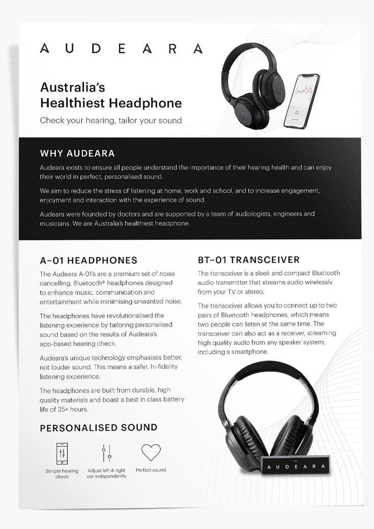 Everything your client needs to know about Audeara and our A-01 products.